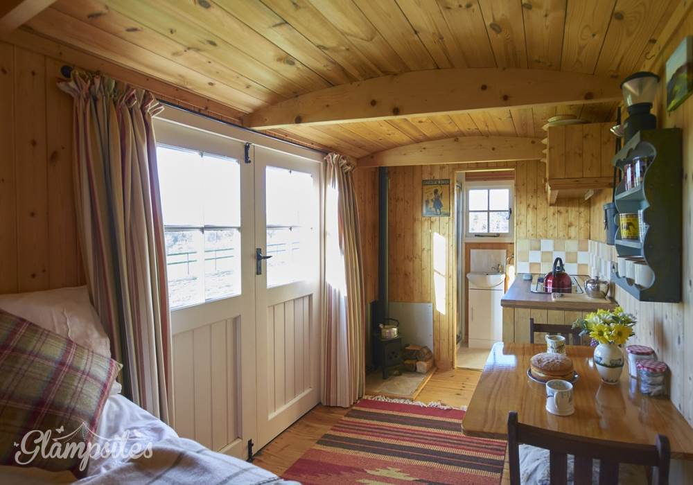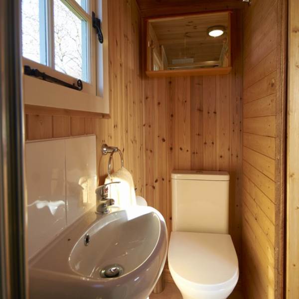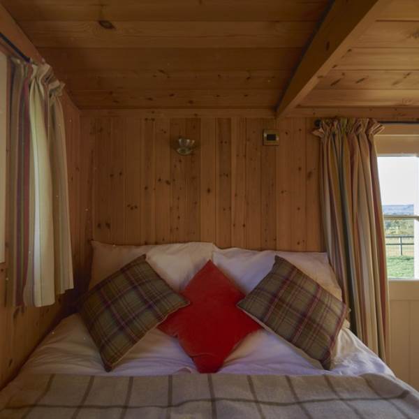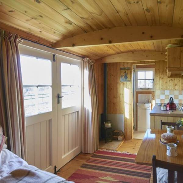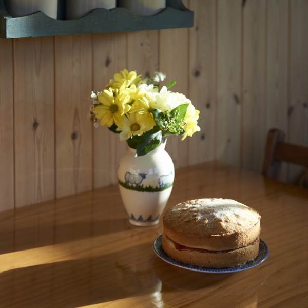 The kitchenette is equipped with hot and cold water, a sink, proper fridge and two gas rings. Near the hut are our happy hens laying eggs for your 'Shepherd's Breakfast'. Some are provided in your basket of homemade and local goodies (but more can be purchased if you want). We also provide some local bacon and Sarah's delicious homemade marmalade for spreading on our home baked bread.