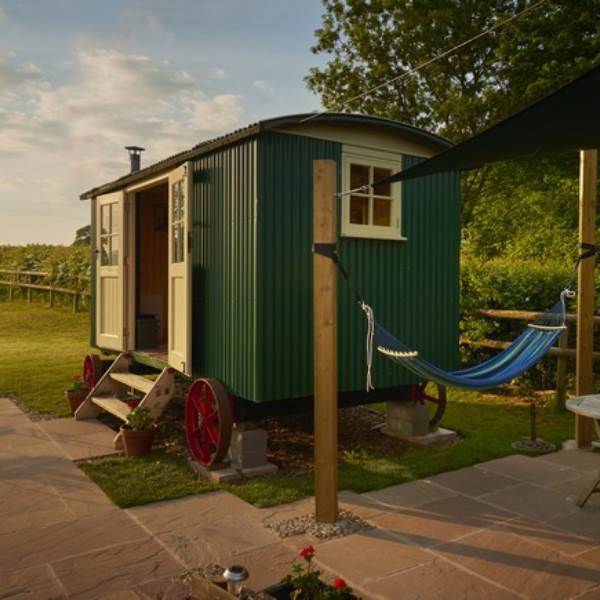 Our well equipped hut awaits you. It's in a field location yet it's connected to mains electricity and water. It even has an en suite shower and flushing loo within the hut so no walking across to the toilet block in the middle of the night and no compost loo! The bucolic serenity of its location makes you feel you are off grid but you're not. An off grid wood fired hot tub is the perfect way to relax.