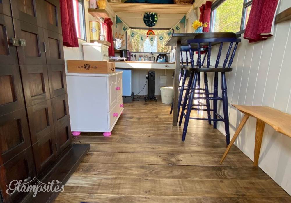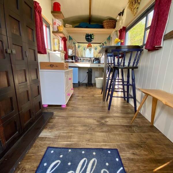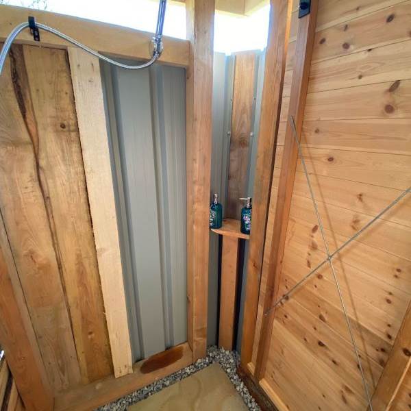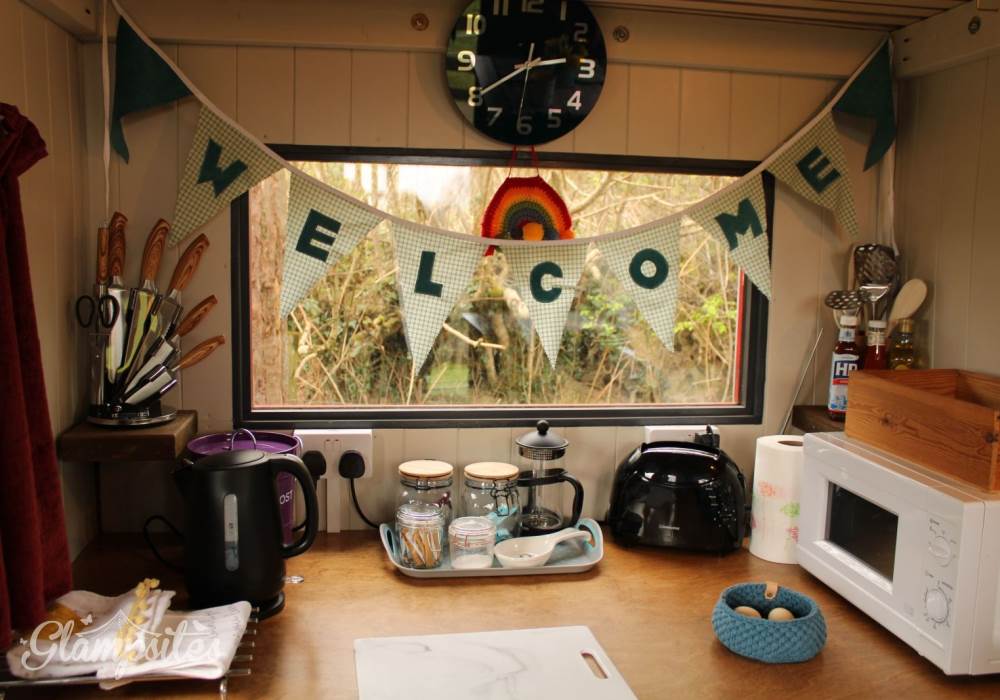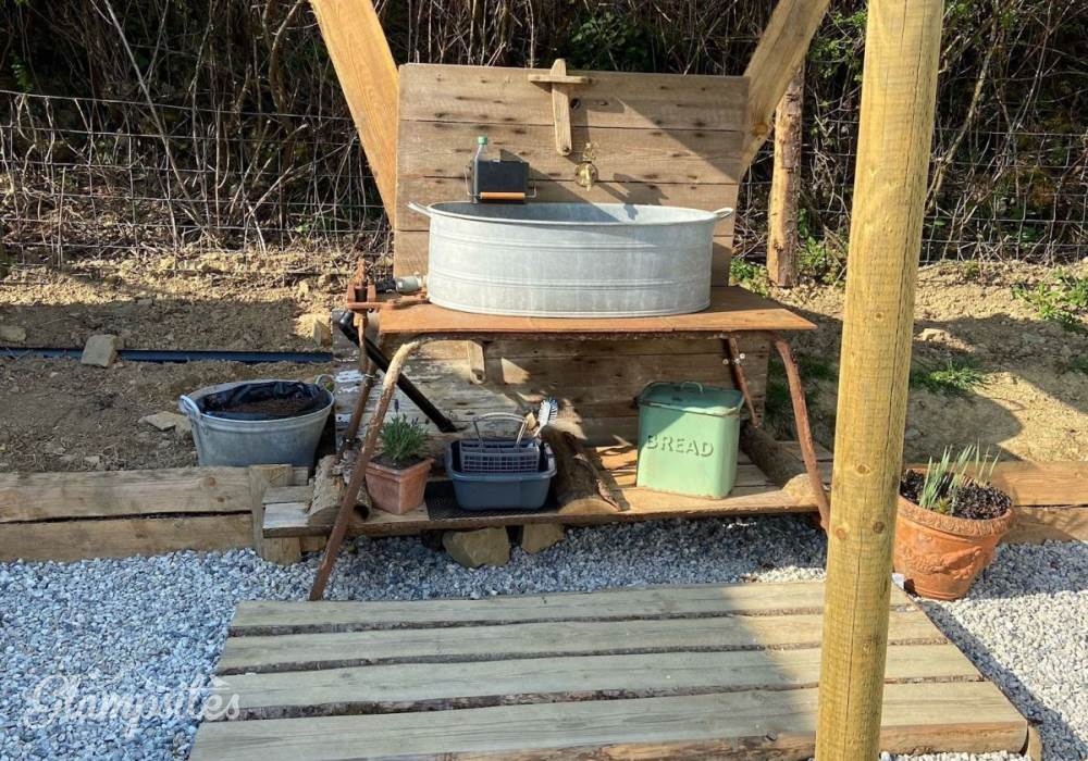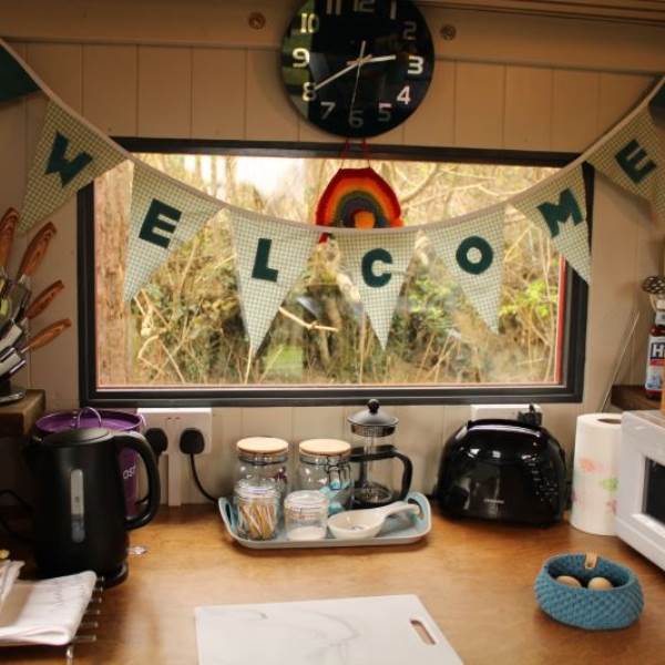 You have exclusive use of a shepherds hut kitchen and hot tub next to the yurt as well as a private electric compost toilet (odour free and no need to empty) and a wonderful heated shower. The kitchen contains a microwave, toaster, induction hob, fridge, and a kettle, and there is a Kadai wood cooker, with enough wood to get you started. Extra wood packs are available. An outdoor sink area with drinking water tap is also provided.