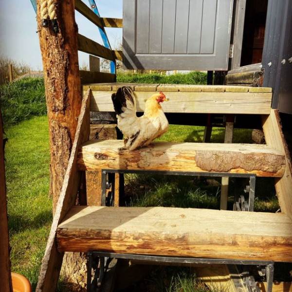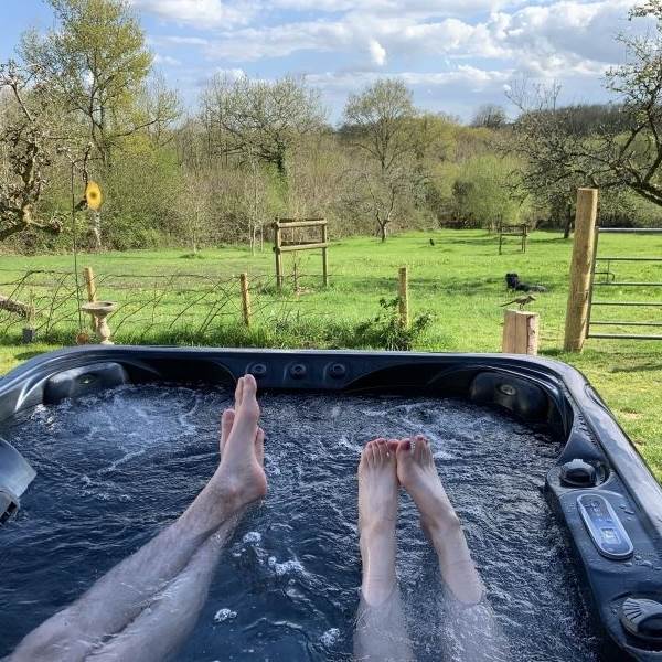 The orchard and adjoining land are full of wildlife and livestock, with chickens roaming when they are allowed, so a well behaved dog or two are welcome to stay. No dogs in the hot tub please!