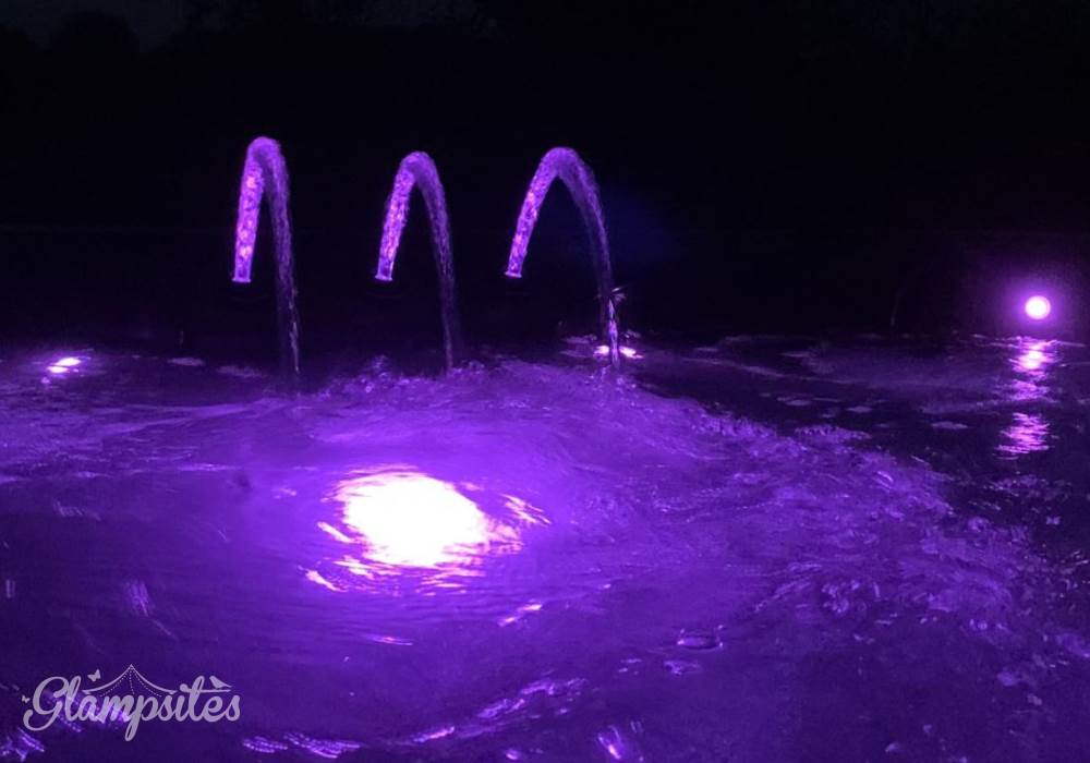 The hot tub has coloured lights and a Bluetooth speaker, and the kitchen also has a breakfast bar area. The site has a good 4G signal.