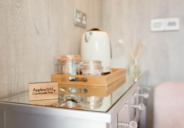 This Posh Glamping Pod sleeps 2 people on comfy twin single beds with linen provided. There is a mini kitchenette with fridge, microwave, kettle, toaster, crockery, cutlery & glassware as well as a Freeview LCD TV & DVD player with free Wi-Fi.