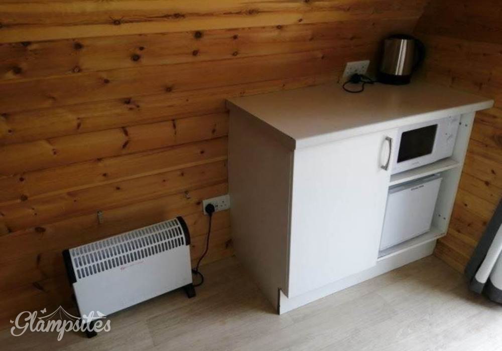 Communal kitchen facilities are provided in the “The Cook House” which is a short distance from your pod, where there is 2 gas hobs a sink and some cooking utensils. There are also tables and chairs where you can sit and eat.