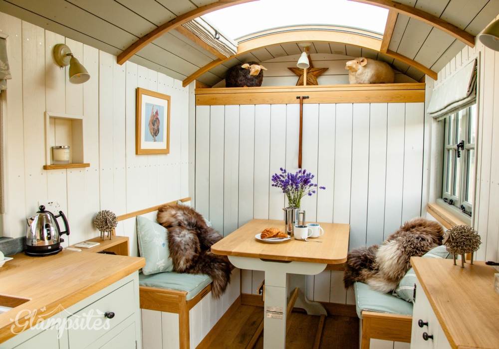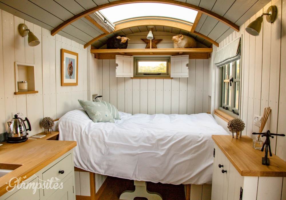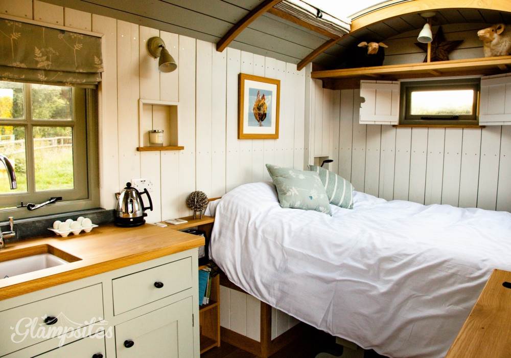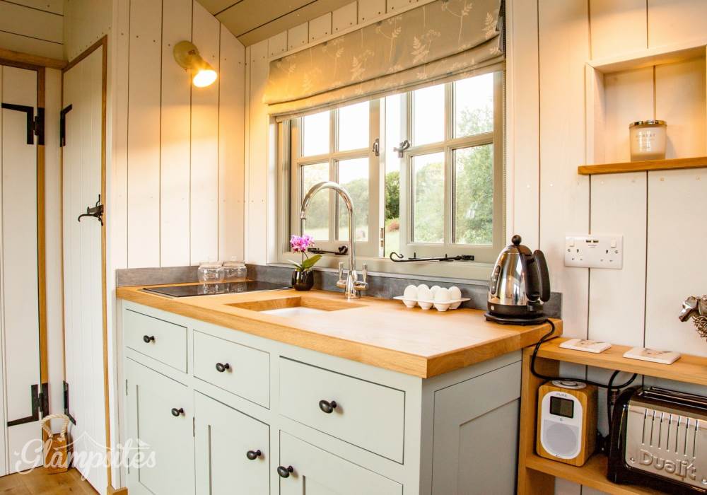 The hut will not fail to please you with its exceptional facilities, as close to a boutique hotel room in a field as you will find anywhere, fully equipped for all your needs including a sumptuous Hungarian goose down duvet to snuggle up in whilst you lay back on the double bed and star gaze long into the night through the curved glass ceiling. The hut if fully equipped with everything you should need (and expect in self-catering accommodation) to make your stay comfortable, including a shower, toilet, twin hobs (to make the full english!) and refrigerator, All you need is to bring yourselves and we provide the rest.