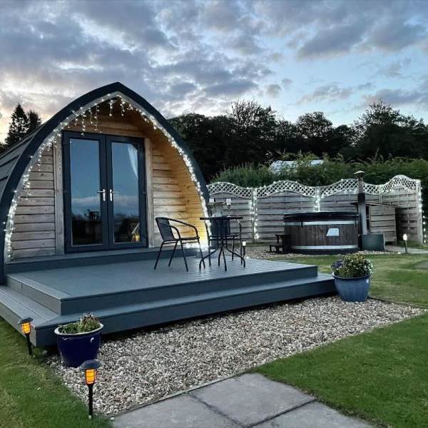 This lovingly handcrafted cosy, charming bespoke pod, nestled in peaceful, tranquil open countryside, overlooking the Northern Lake District fells, creating the perfect couples retreat. Spacious, en suite shower, basin & WC, king-size bed, robes, towels & bedding provided, TV, free WiFi, fully equipped kitchen, 2 x ceramic hob, oven & grill, fridge with ice box , Belfast sink, dinning area, with everything you need to relax & enjoy country living. Your own private wood fired hot tub, outside furniture & decking area for alfresco dinning, firepit & BBQ( available), woodland walks close by, , perfect for cycling( local hire'Bike Seven' available, can be delivered prior to arrival) fishing on Border Esk river, renowned for sea trout & salmon available. walking, swimming & fishing opportunities.