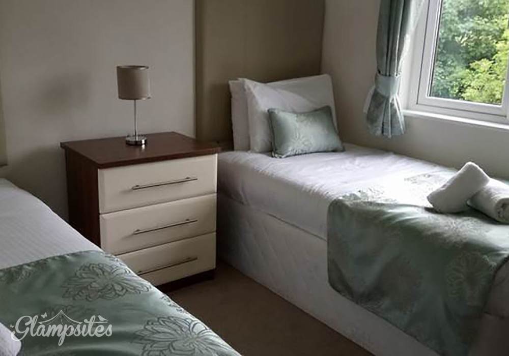 This two-bedroom country lodge includes one double bedroom with ensuite shower room, one twin bedroom with two single beds and a contemporary family bathroom with bath and shower.