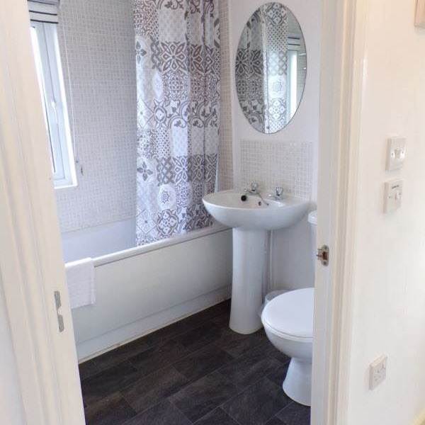 The family bathroom comprises of a bath, shower, w/c and hand sink.