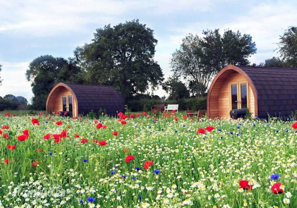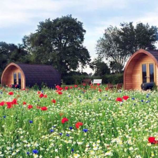 Foxglove Pod is furnished to a high standard with an en-suite with shower and sleeps 2. The double doors are situated at the end of the pod.