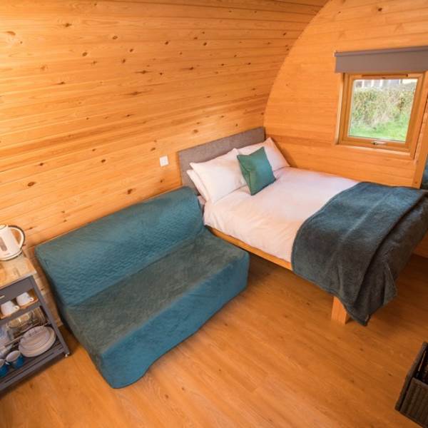 Meadowsweet Pod is furnished to a high standard with an en-suite with shower. This pod is the closest pod to the parking area (being approximately 40 metres away).