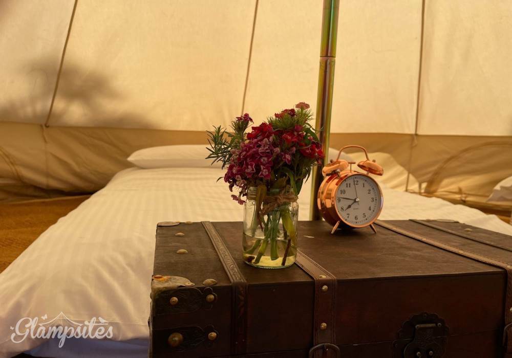 The great features of the glamping bell tents are that they are already pitched on arrival, removing the hassle from camping and allowing for a later arrival if perhaps you are coming for the weekend after work.