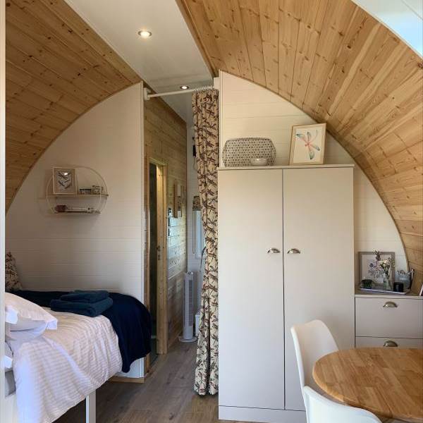 Deep Dale is a new spacious glamping pod which comfortably sleeps 5 with two double beds and one small single. All bedding is provided.