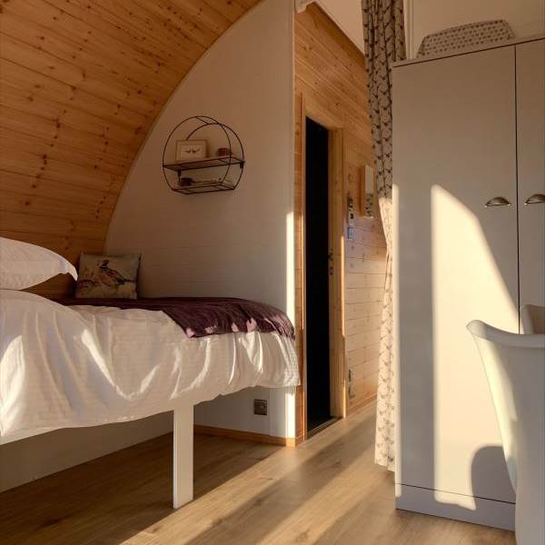 Mingle Dale is a new spacious glamping pod which comfortably sleeps 5 with two double beds and one small single. All bedding is provided.
