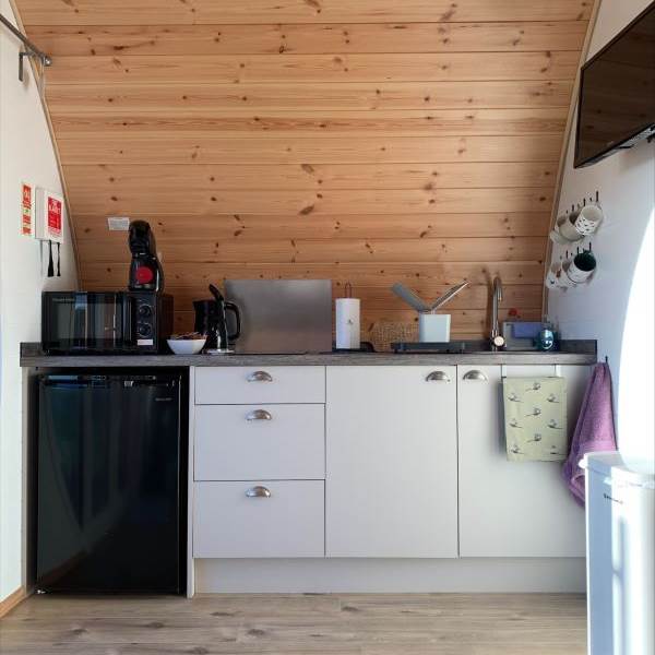 Kitchenette includes fridge with ice compartment, microwave, kettle, ceramic hob, toaster, coffee maker & a range of crockery, cutlery, cooking utensils etc. A welcome hamper including tea, coffee pods, milk & breakfast essentials is provided so remembering to call in at a shop on the way is not necessary.