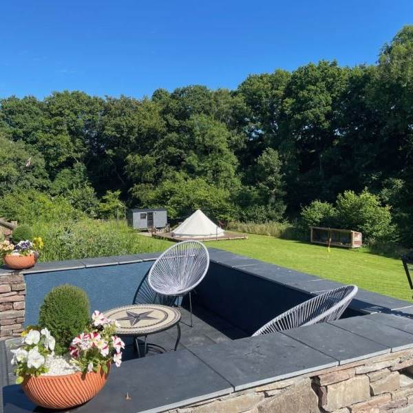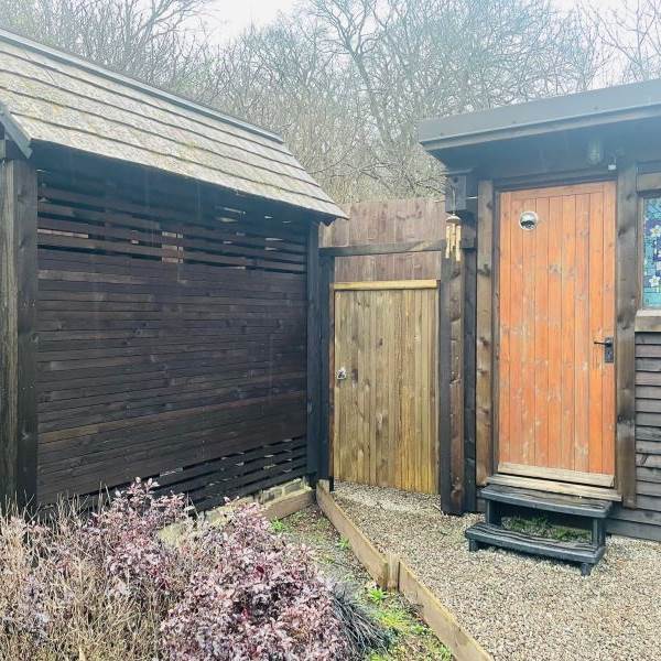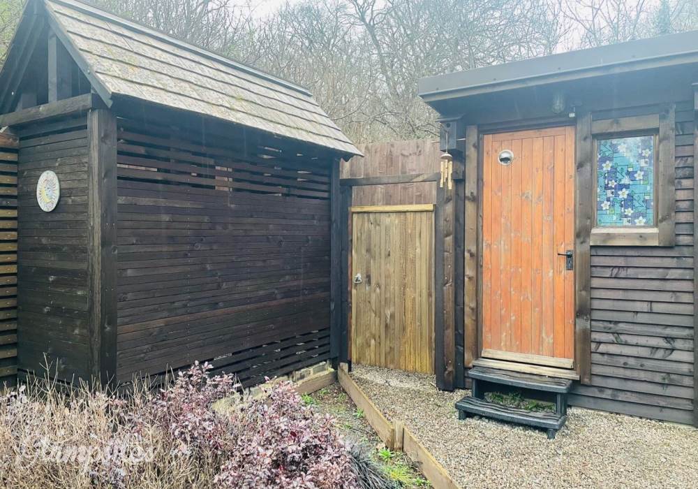 The cabin has its own unique outdoor bucket shower at the rear heated by the sun or by boiling the kettle on the gas hobs or open fire/log burner. New for 2024 the cabin has its own private flush toilet in a stylish outhouse to the rear of the cabin - our guests are referring to it as the 'nightclub' toilet due to its one-of-a-kind decor.