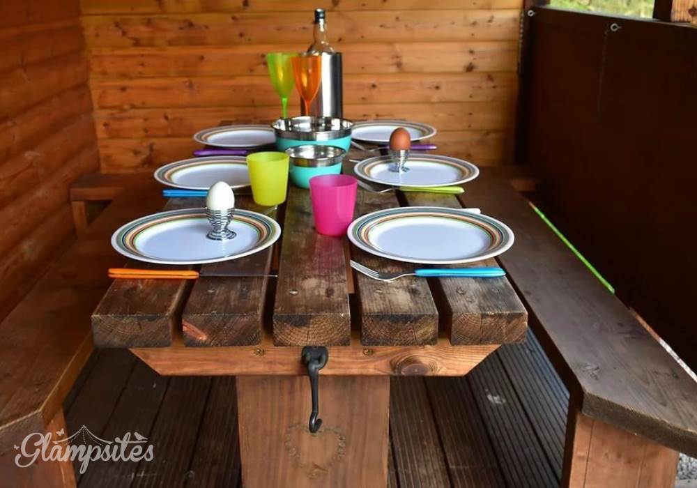 Supplied in the Camping Cabin is a large cool box, cushions and basic blankets, firewood*, firelighters, books, toys and games.