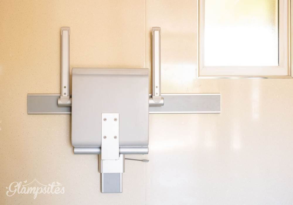 Enfys has a dedicated disabled parking spot 20m away and is at the end of the field nearest the honesty shop. It faces South with lovely views across the valley.