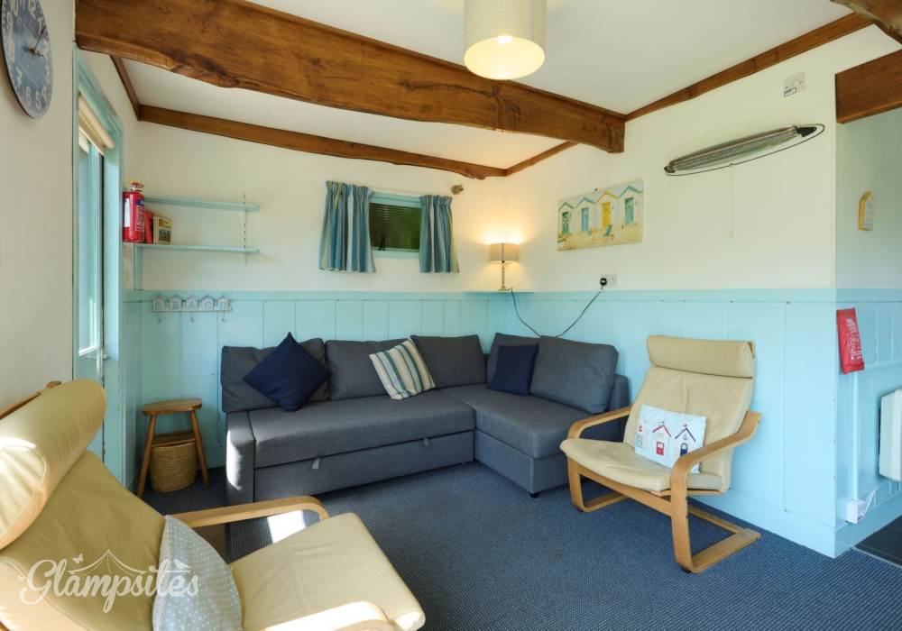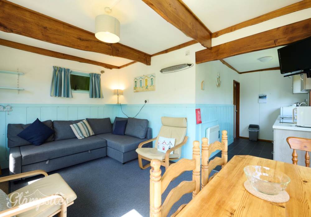 There’s a car parking space near each cabin and private roads and paths give access to the beach, an unspoiled stretch of rock pools and shingle with sand at low tide. Adjoining National Trust land, the beach is no more than a 10-minute stroll away from any of the cabins.