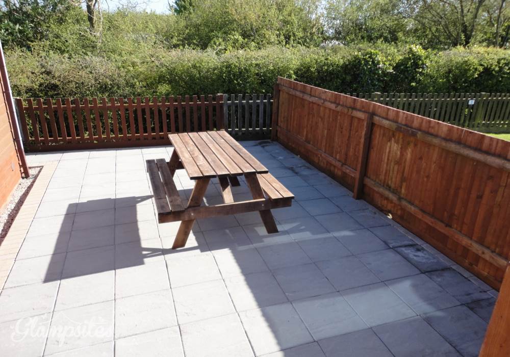 On arrival to the lodge there is a dedicated parking area adjacent to the lodge. From the parking area you enter into a spacious private courtyard (21ft by 14ft) with a picnic bench, perfect for sitting and relaxing with an early morning coffee listening to the morning birds sing.