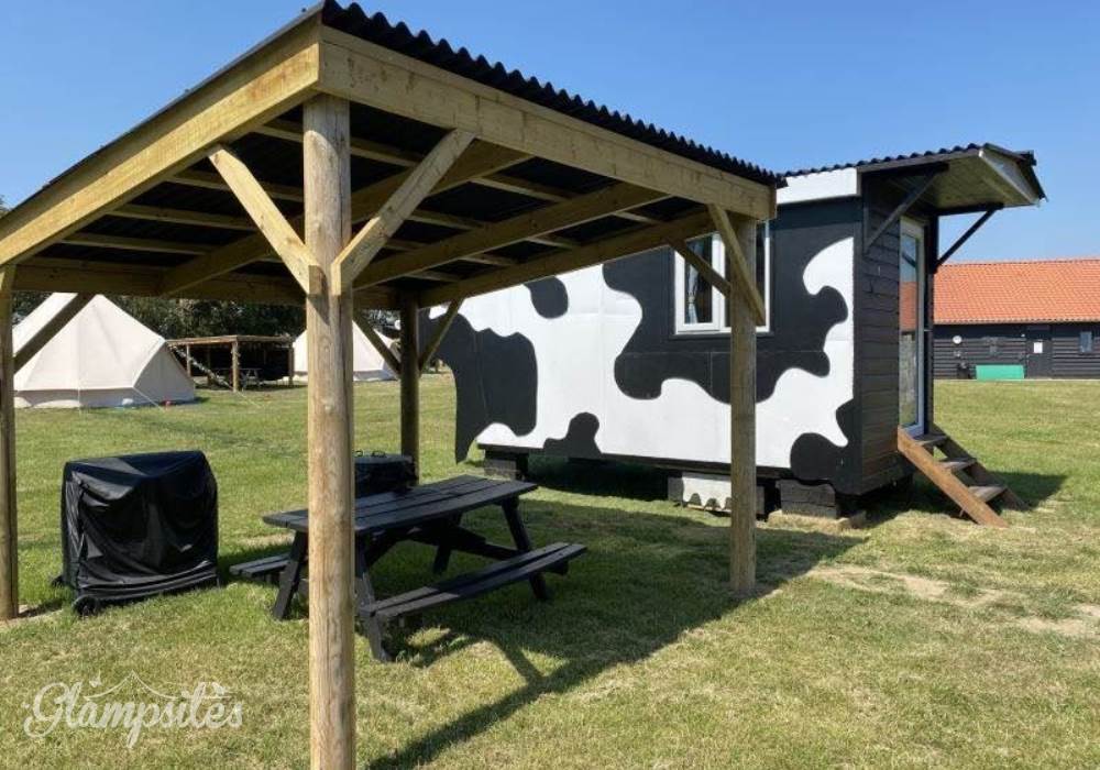 Our Betsy cow-shaped shed in the Suffolk countryside sleeps up to 4 guests comes equipped with proper beds and bedding provided. Admission to our nearby farm park, which has ponies, alpacas, and goat yoga (it's a thing), is also included.