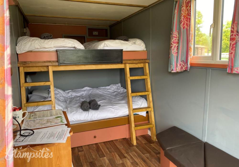 Our Molly cow-shaped shed in the Suffolk countryside sleeps up to 4 guests comes equipped with proper beds and bedding provided. Admission to our nearby farm park, which has ponies, alpacas, and goat yoga (it's a thing), is also included.