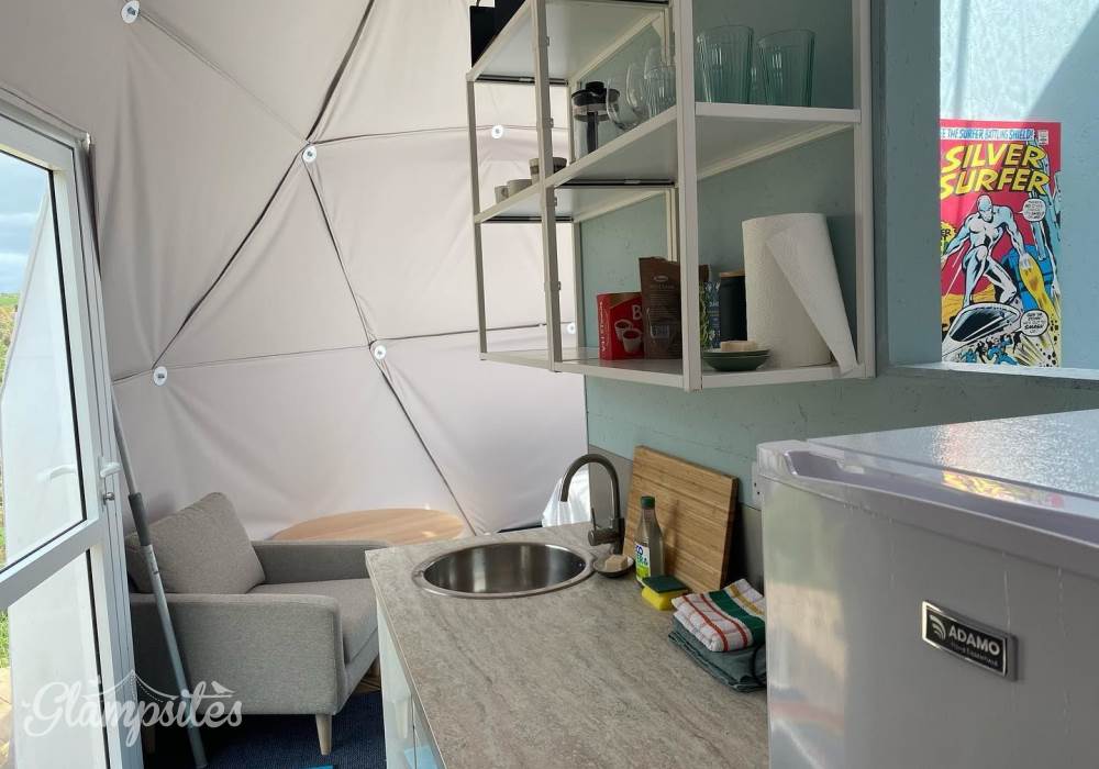 The Geodome was incredible, perched on the Atlantic coast, with uninterrupted views of the sea, right out to Fastnet lighthouse, this was a very special stay. The campsite is for outdoorsy types, you will need your boots ad plenty of layers out of season as it can be wet and windy, but it is a stunning location that is really off the beaten path. The facilities themselves are low key, and we liked the convenience of the outdoor shower and compostible toilet. The geodome has two separate sleeping areas (double and two singles) and a gally style kitchen that is a remarkable use of space. The star gazing window in the ceiling is a great touch. The whole front section is for soaking up the views either over meals at the dining table or curled up on the full sofa with the stove lit beside you. It's a wonderful hideaway where you can be completely self-contained in nature :)