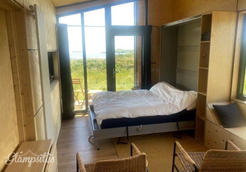 The EcoCabin sits in it's own landscaped area within the Fastnet camping field with space for a small tent.