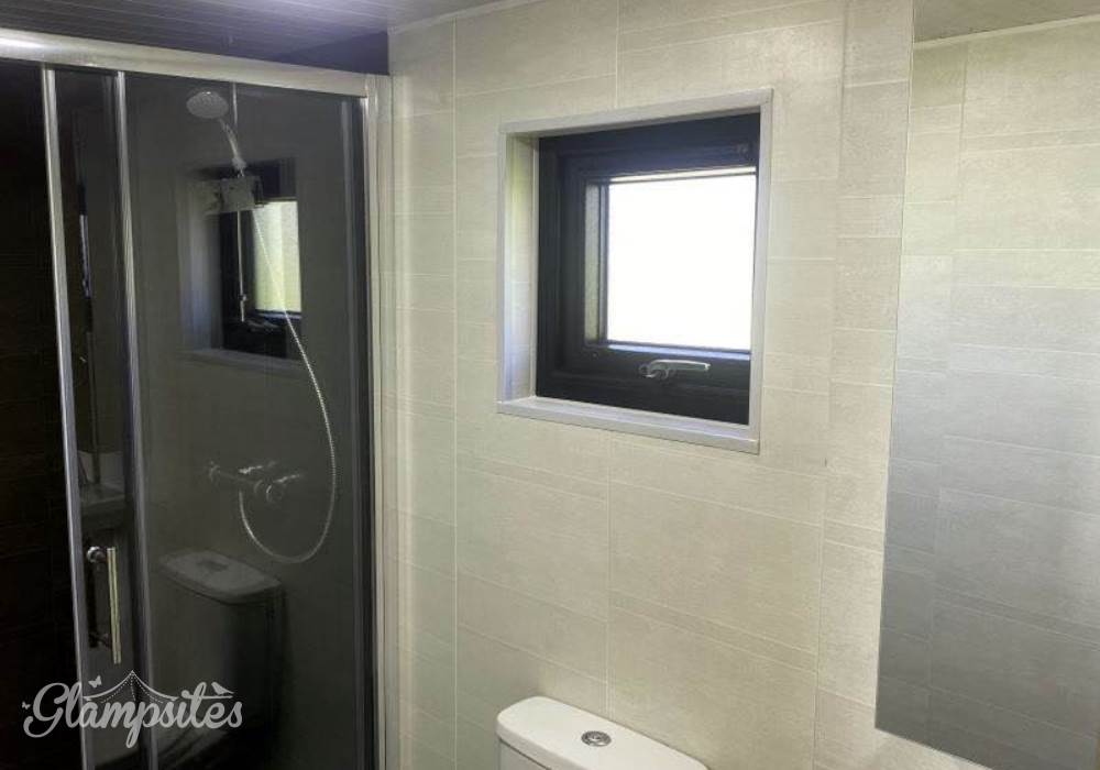 The EcoCabin sits in it's own landscaped area within the Fastnet camping field with space for a small tent.
