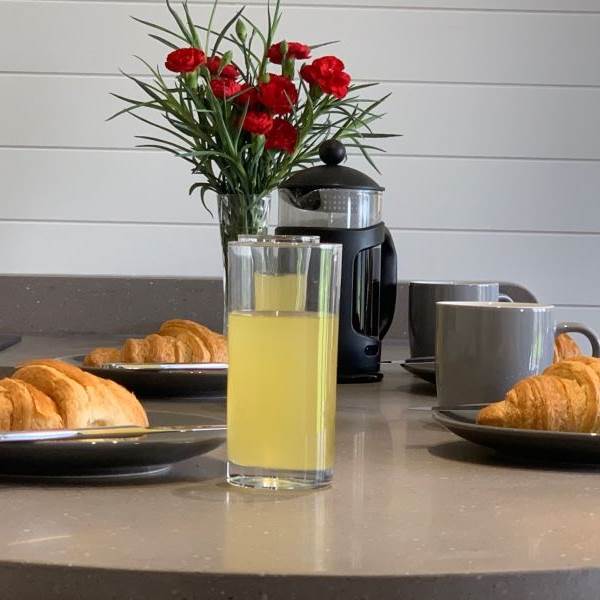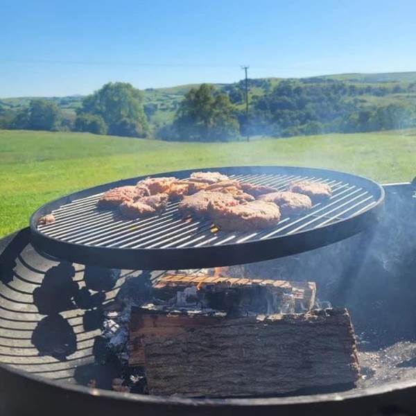 Outside, the large patio is fully decked and has a private hot tub and comfortable seating. There is also a firepit outside each pod, which we have had custom made, which includes a cooking grill that can be used as a BBQ. A complimentary wood bag is provided for your use and additional wood can be purchased on site.