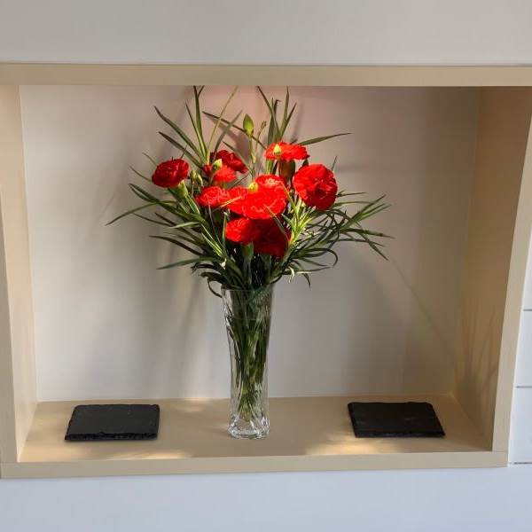 In the kitchen there is a hob, oven, microwave, kettle, toaster and a fridge. Kitchen equipment is also provided, including plates, bowls, cutlery, pots, pans, cups and glasses, as well as a tin opener, chopping boards, wooden spoons and more.
