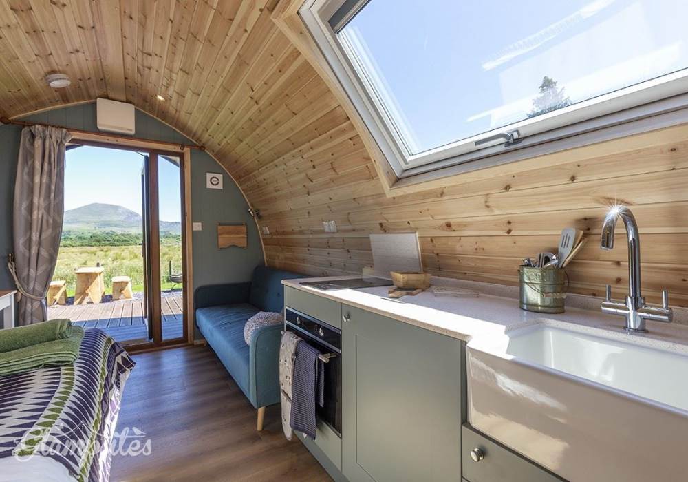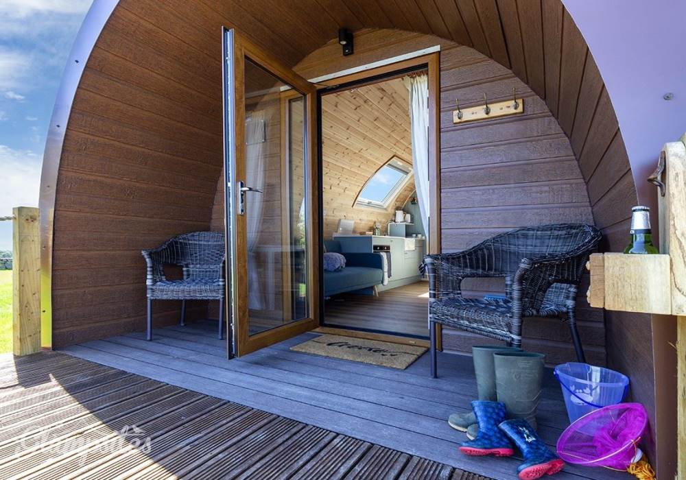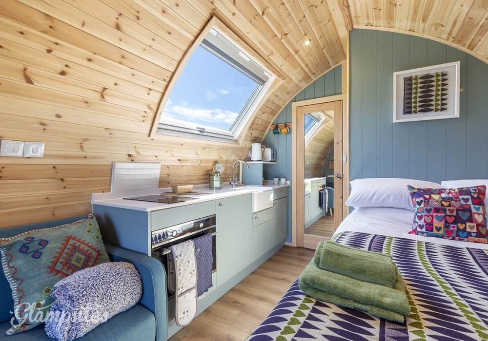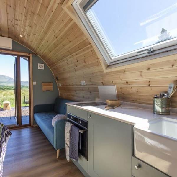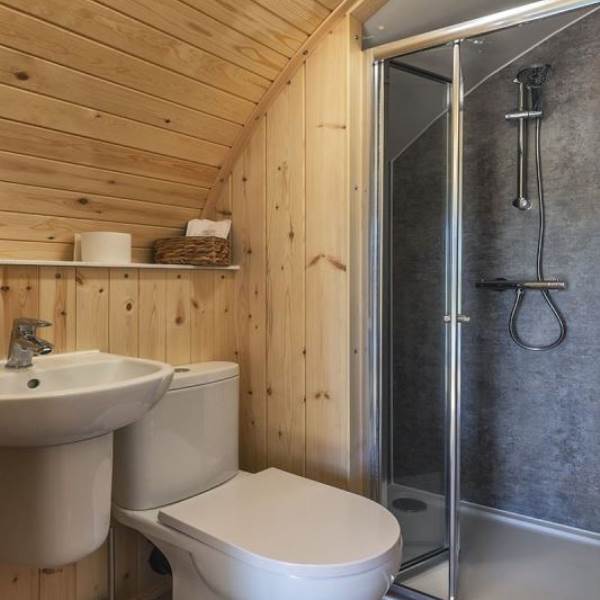 The pod offers the best of both worlds, the freedom of camping with the comfort of home. With its own en-suite shower room, well-equipped kitchenette, and a lounge area with sofa and Smart TV, this pod truly has everything. Underfloor heating will keep you warm all year round, and there is good WiFi. The decor reflects the countryside location, and the comfy double bed features duvets made locally from 100% pure Welsh BAAVET wool.