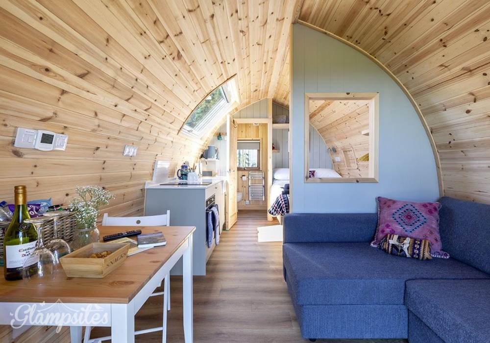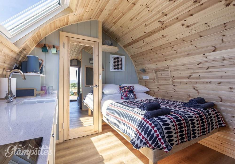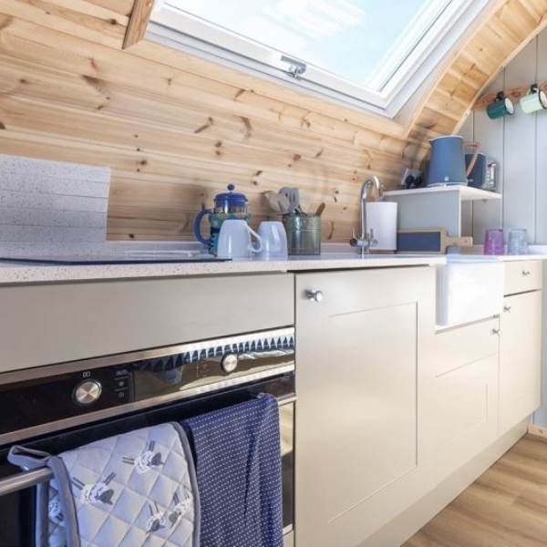 The pod offers the best of both worlds, the freedom of camping with the comfort of home. With its own en-suite shower room, well-equipped kitchenette, and a lounge area with sofa and Smart TV, this pod truly has everything. Underfloor heating will keep you warm all year round, and there is good WiFi. The decor reflects the countryside location, and the comfy double bed features duvets made locally from 100% pure Welsh BAAVET wool.