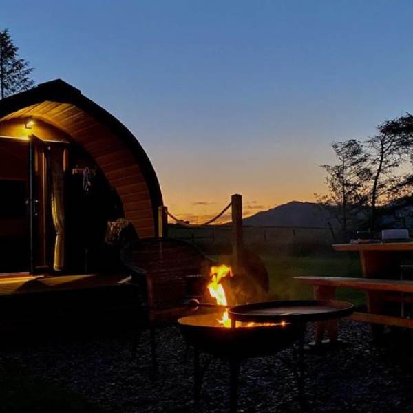 The pod also has its own outdoor space with a firepit/BBQ and a table and bench, perfect for enjoying the evenings savouring the breath-taking views, absorbing the sounds of the countryside and toasting marshmallows in the fire!