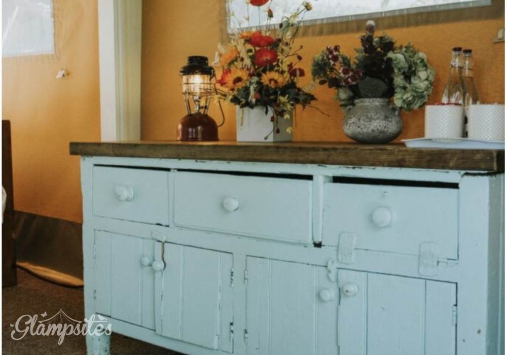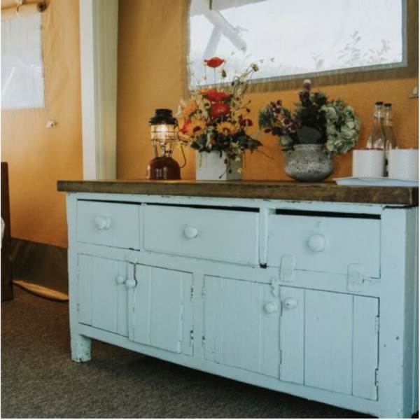 Roosters even have their own key-access luxury private shower, vanity and toilet facility which is the length of a cricket wicket away from the tent, discreetly located beyond a screen of evergreen hedging. Think walk-in power shower with plenty of drying and dressing room area, vintage mirror vanity with counter-top sink and comfort toilet. All you need for a proper pamper!