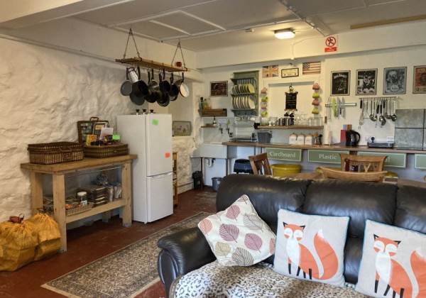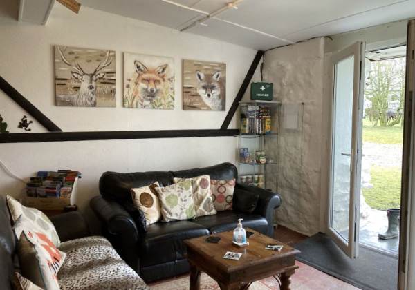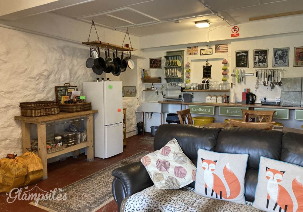 Glamping guests have full use of the glamping kitchen which includes dining table and comfy seating area. Kitchen facilities include electric hob, microwave, toaster, kettle and fridge freezer. All pots, pans, crockery, glasses, cutlery and utensils are provided.