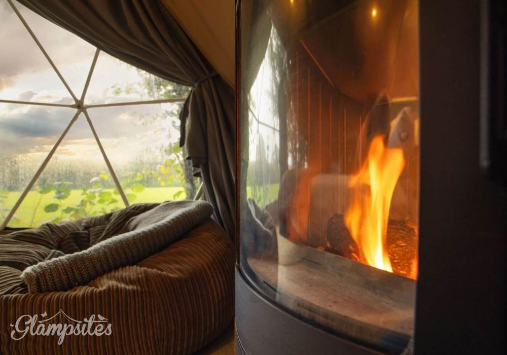 The domes are functional all year round and the seasons offer such unique experiences of our glamping site, all whilst being able to gaze out at the beautiful views and wildlife. Summer may find you relaxing out on your private decking area, having a drink or BBQ and soaking up the sun or even venturing to a local pub garden. Whilst in the winter we have no doubt that you'll enjoy the warmth and comfort of our log burner.