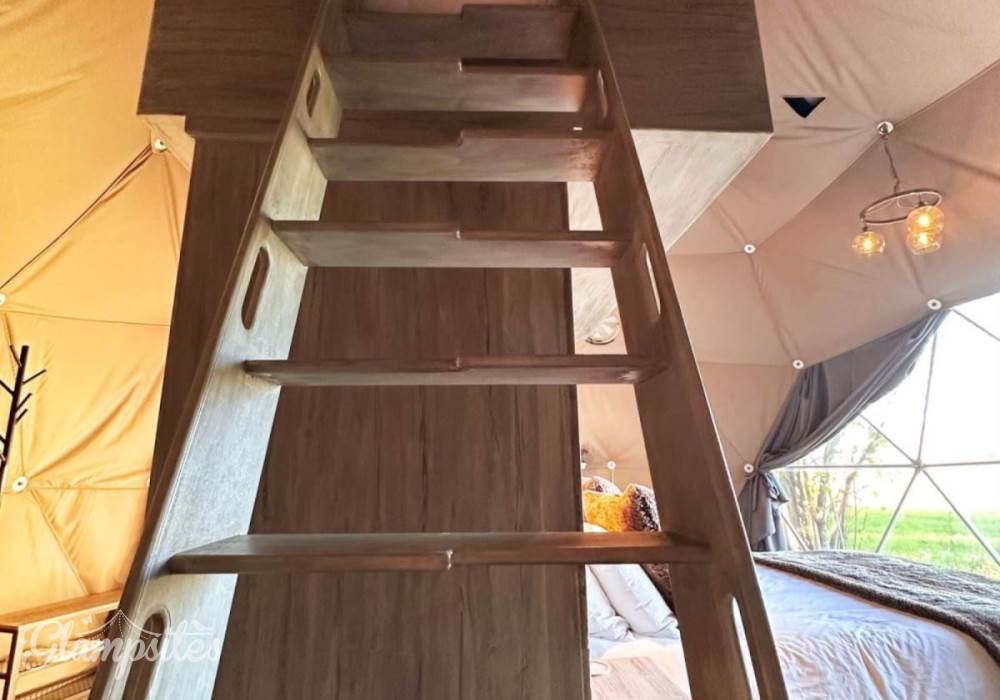 Inside your dome you will be invited by a spacious but cosy, relaxed area with a kitchenette, dressing area with storage, dining area, luxury beds and the most comfortable bean bag lounger.