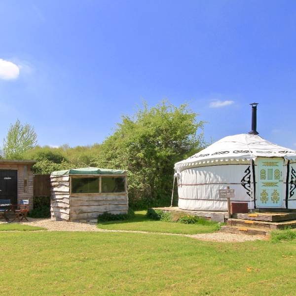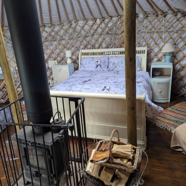 The Dining Cabin: Just steps from your yurt is your fully enclosed, private Dining Cabin. Featuring its own wood-burning stove, it’s the ultimate "indoor-outdoor" space for long dinners and late-night chats—no matter the British weather!