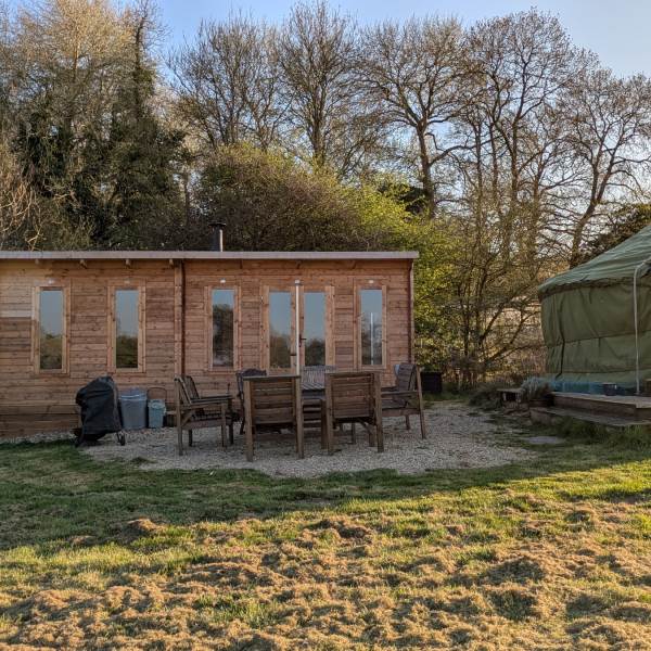 Relax & Dine: Features table and benches for indoor dining, and its own wood-burning stove to keep the conversation going long into the night.