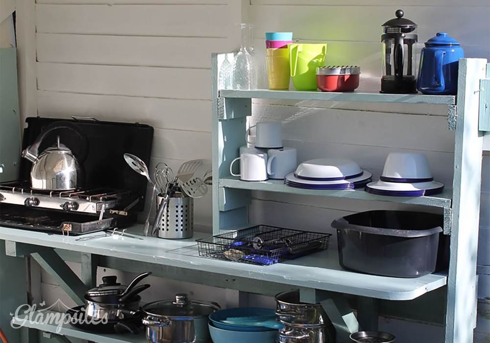 Indulge in culinary adventures with the convenience of The Cwtch Wagon's fully equipped camp kitchen and dining area. From a 2-ring gas stove to an array of pots, pans, and utensils, everything you need to whip up delicious meals is at your fingertips. A cool box ensures your provisions stay fresh, promising delightful culinary experiences amidst nature's embrace.