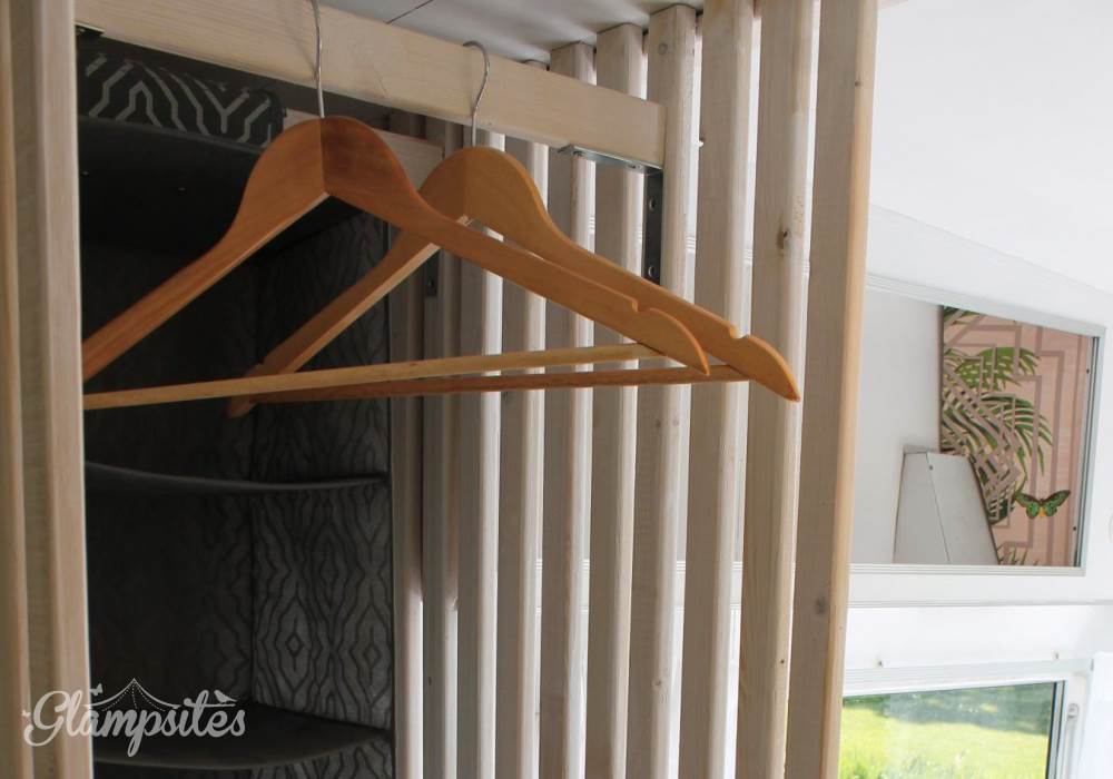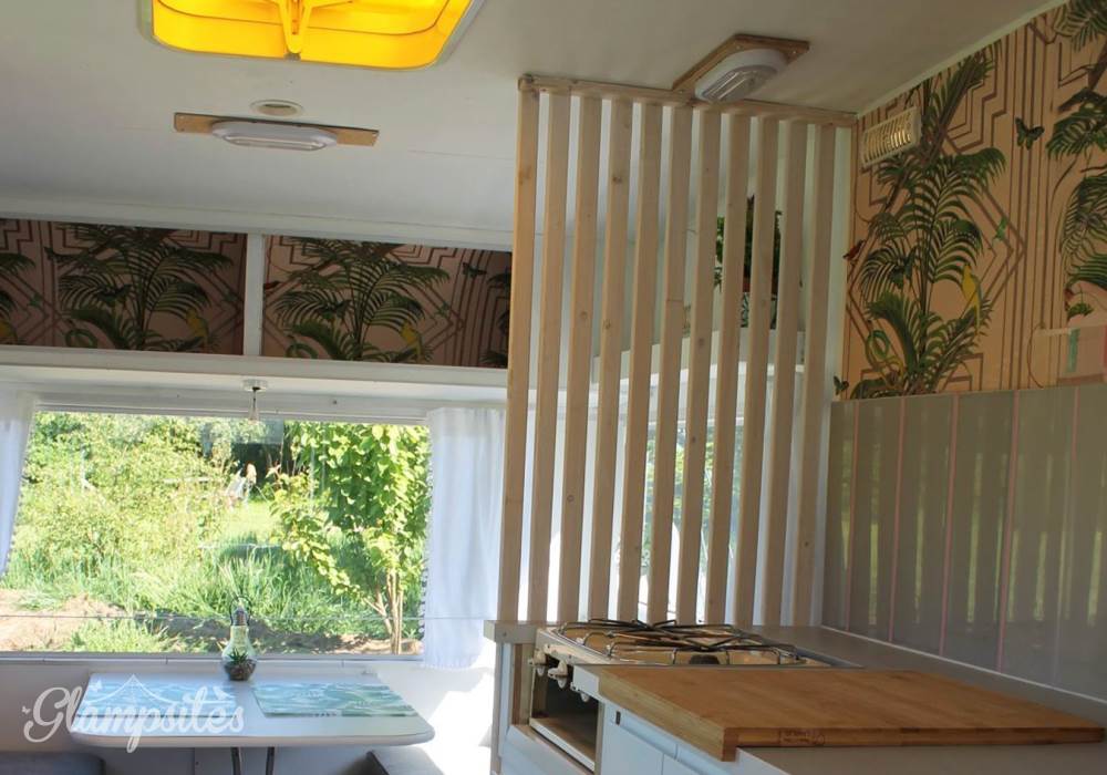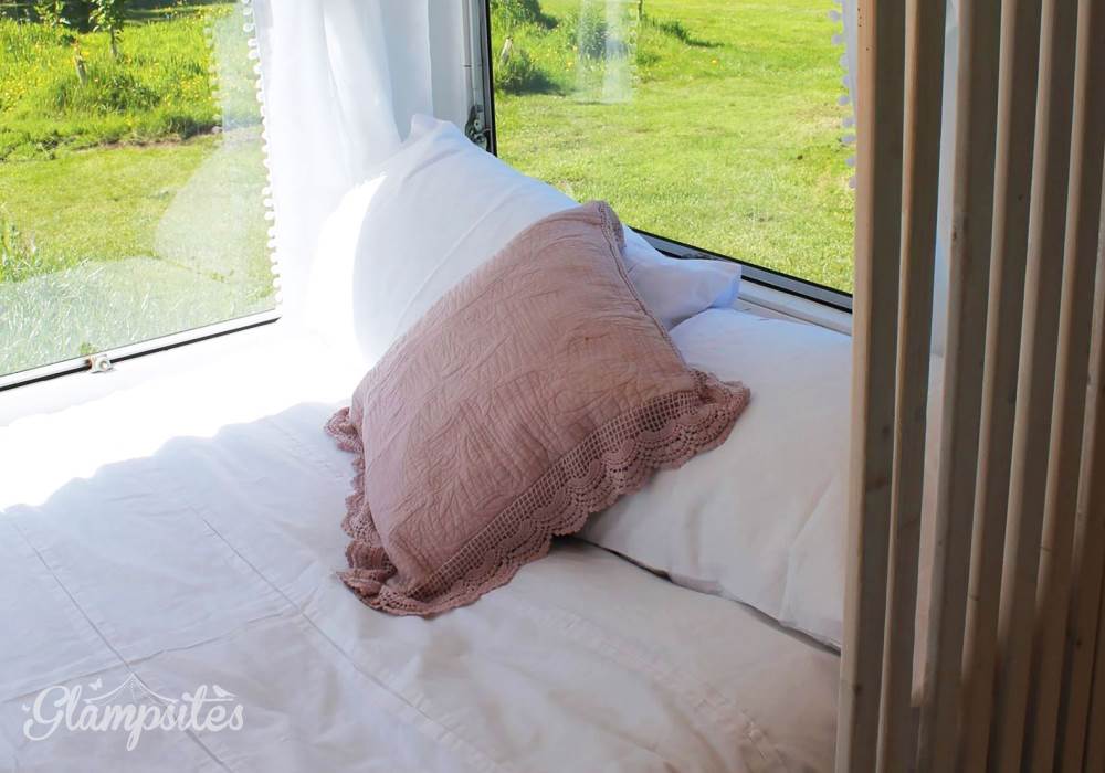 One of the highlights of Gertie's charm is her off-grid status. Situated on her own pitch amidst young trees, guests can disconnect from the hustle and bustle of everyday life and reconnect with nature. Despite being off-grid, Gertie doesn't compromise on convenience. Inside, guests will find phone charging plugs and lighting powered by solar energy, ensuring a sustainable yet comfortable stay.