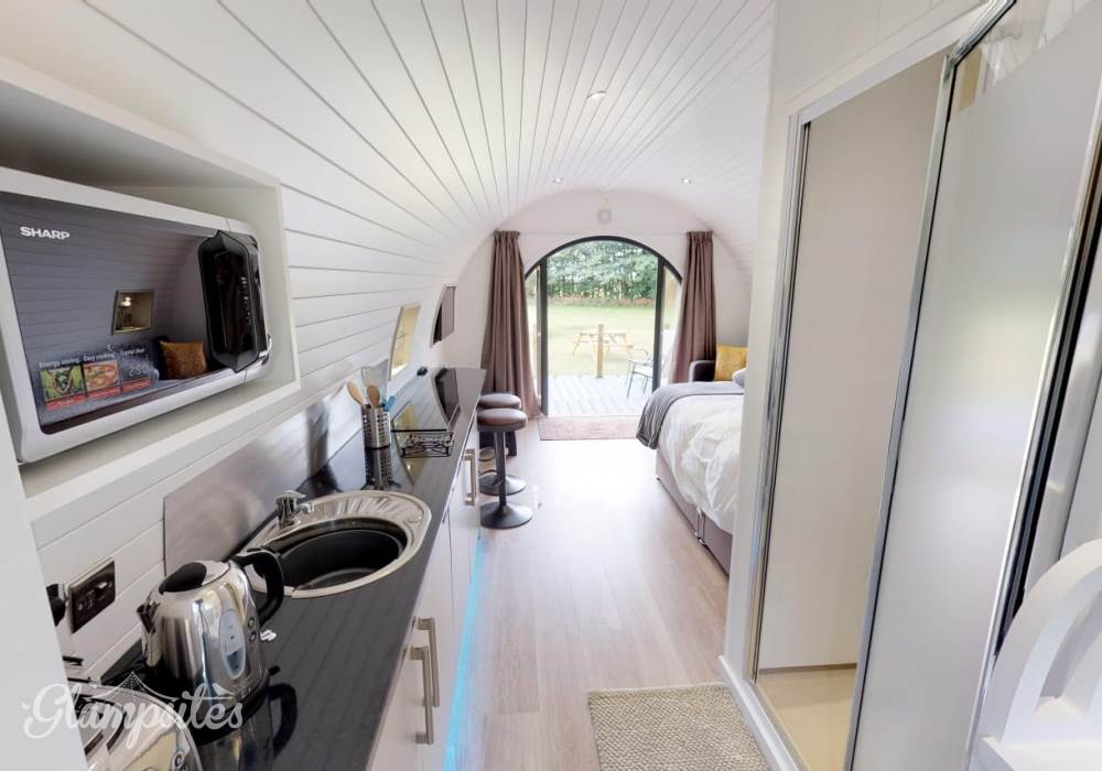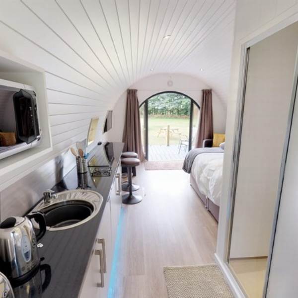 Offering more luxury than a glamping experience, the accommodation is built and furnished to a high-quality standard, creating a delightful getaway for guests. The luxury pods are self-contained, with en suite bathroom and kitchenette, and are specially-designed to be used all year round. Designated parking is also provided in the parking area central to the pods.