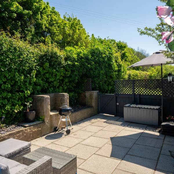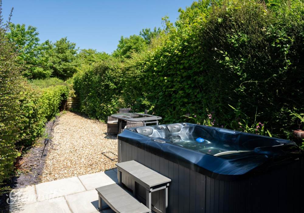 The patio is ideal for al fresco dining, featuring a table and chairs, loungers, and a charcoal BBQ (please bring your own charcoal). The hot tub on the private terrace invites you to unwind in style. The secure garden ensures privacy, while parking is available for one car.