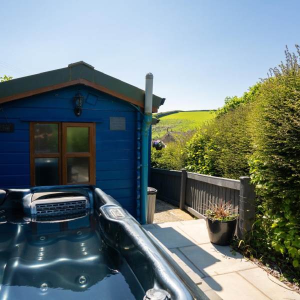 Experience the epitome of tranquility at Meadows Watch, a beautifully designed wooden cabin perched elegantly on a hill, offering breathtaking panoramic views of the lush countryside on our working organic dairy farm. With a charming patio on one side and a private garden area featuring a hot tub for stargazing on the other, this retreat is a sanctuary of relaxation and natural beauty. A veranda alongside the cabin provides a convenient space to store your surfboards and outdoor gear, sheltered from the elements. Our dog-friendly property warmly welcomes your furry companions..