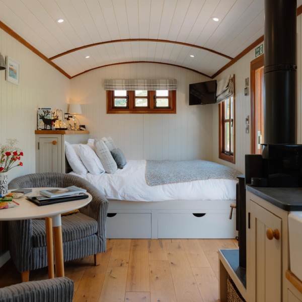 This romantic retreat offers a luxury get away for two. The surrounding views are stunning and if you’re lucky, you can spot some local wildlife, or watch our mini shetland ponies and alpacas playing in the fields.