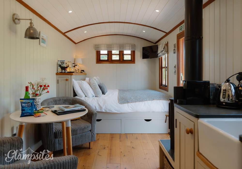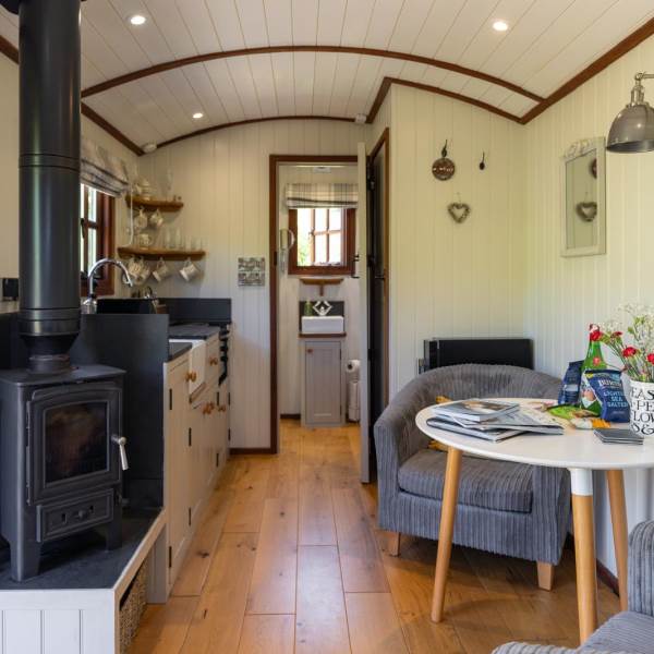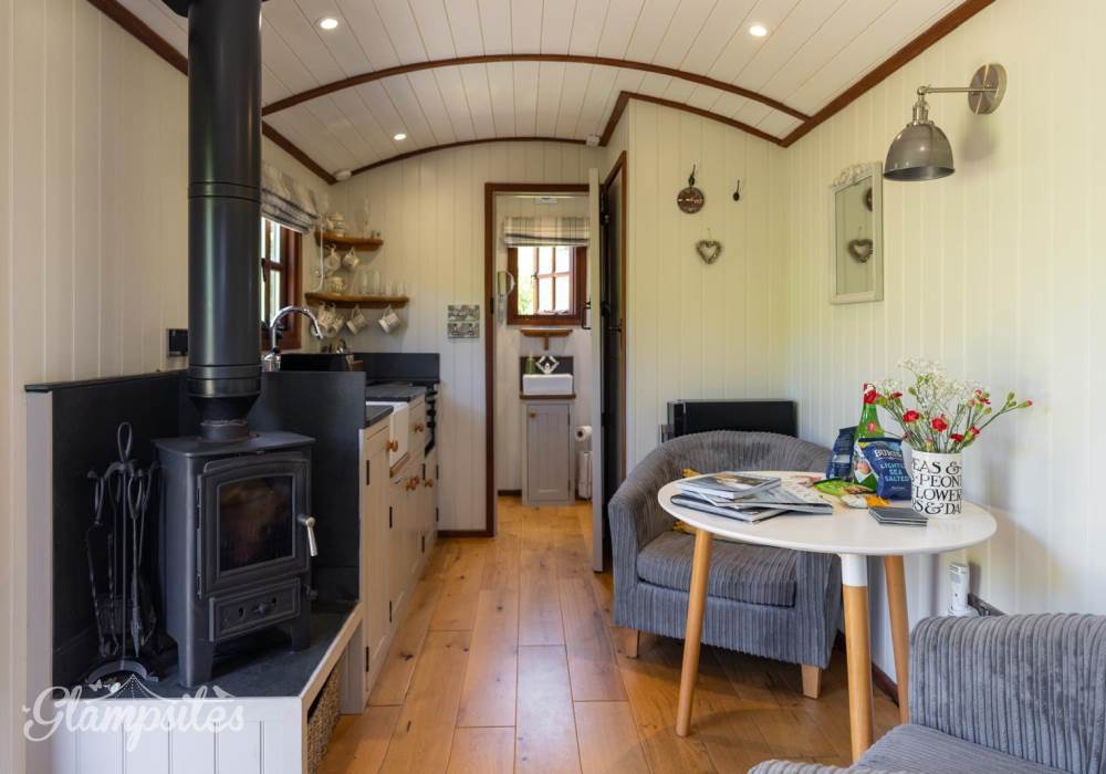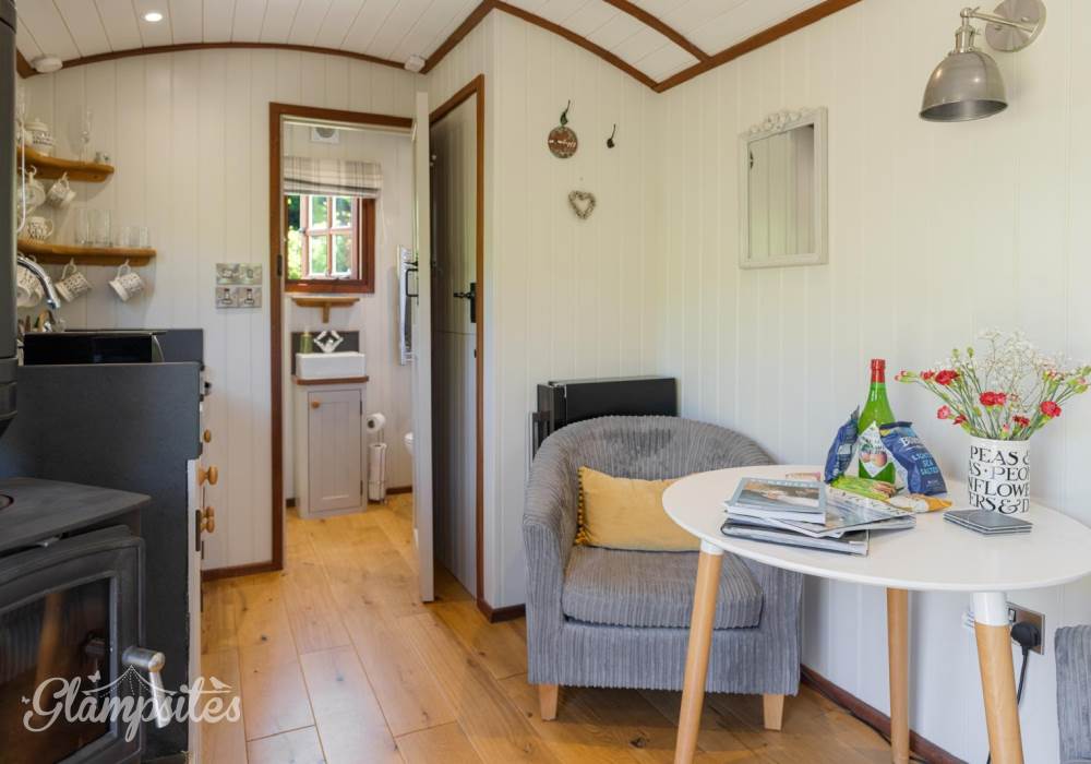 Furnished with two armchairs and a dining table, wood-burner and a flat screen smart TV ( own accounts needed for Netflix/amazon prime)Underfloor heating throughout.