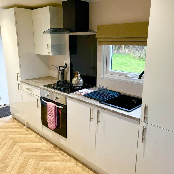Sleeping up to four people, Tor Lodge offers a luxurious king size bed and a separate bijou twin room, both of which are equipped with ample storage space via modern fitted wardrobes and bedside cabinets.