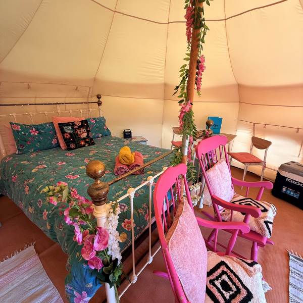 Our tents are off grid, so we provide a solar portable power pack with USB sockets for phone charging and solar lights for those darker evenings.