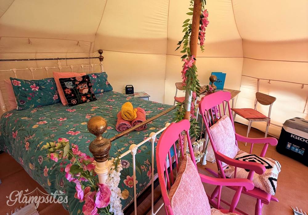 The tents are equipped with Crockery, Cutlery, pans etc along with a large cool box to keep your Prosecco cold on the warm evenings. There is an ordnance survey map of the local area and a pair of mini binoculars for wildlife spotting (lots of squirrels, rabbits, badgers, foxes, pheasants, many types of birds and of course Owls live in and around Owley Woods)