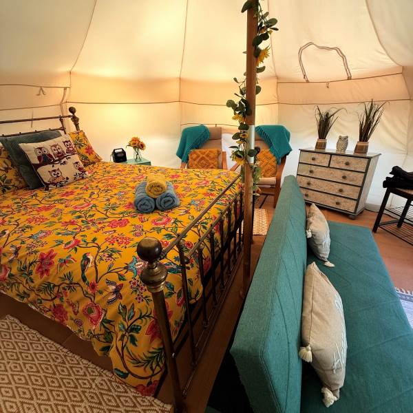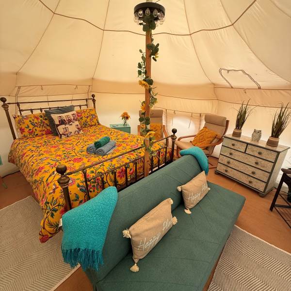 Our tents are off grid, so we provide a solar portable power pack with USB sockets for phone charging and solar lights for those darker evenings.
