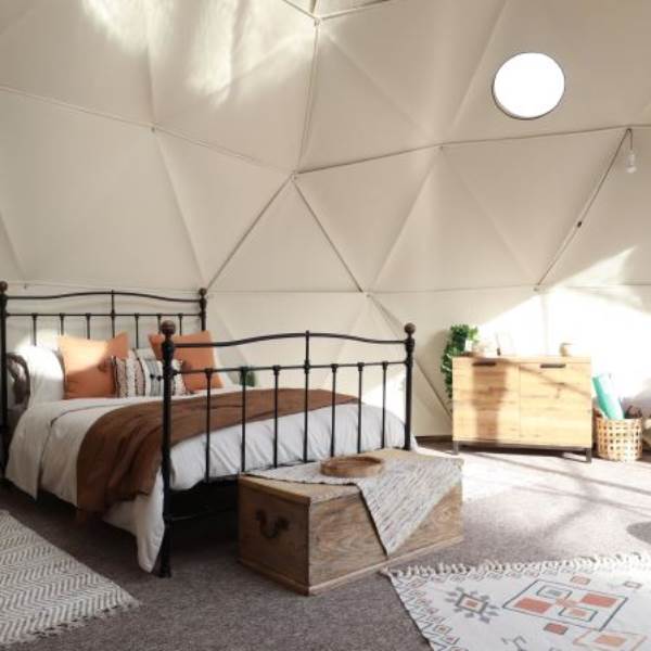 The dome is fully equipped with everything you will need for a relaxing and rejuvenating escape. A comfortable king size bed, plenty of seating, an extensive range of board games, books, chess table and lots of space for some sunrise/sunset yoga. The main feature of the dome is the skylight and huge panoramic window where you can star gaze from the comfort of your own bed.